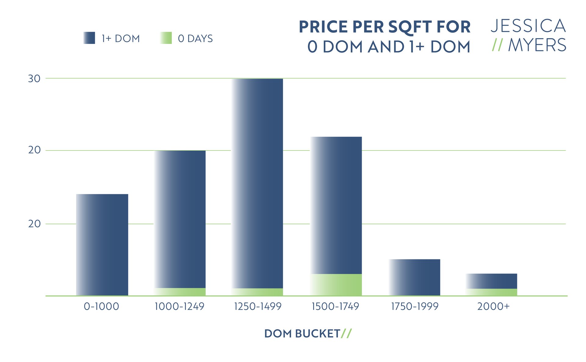 As you can see, there are not a ton of off-market -- or 0 days on market -- sales. Not only that, but most of those off-market sales hover in the 1500-1749 price per square foot bucket. Not particularly lower than "on market" sales...
